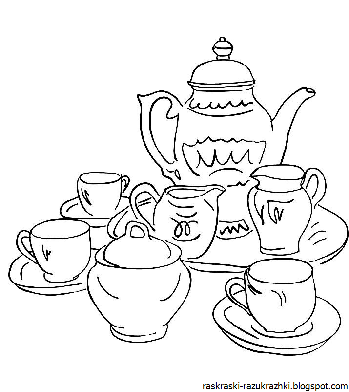 ![Раскраска чайный сервиз для детей]()
