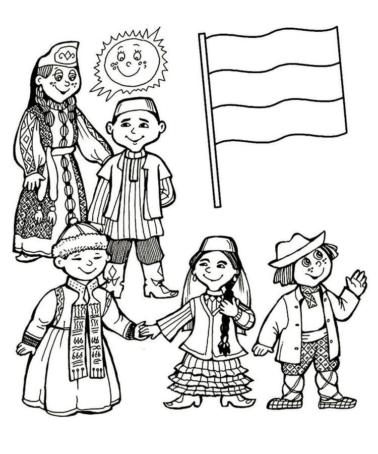 ![Раскраска Дружба народов для детей]()