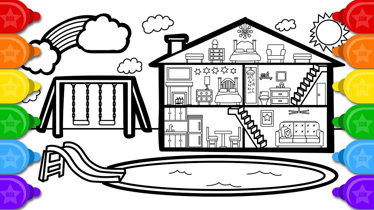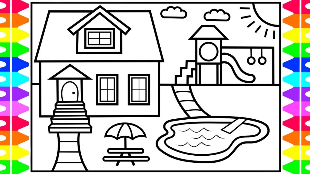 Дом раскраска для детей