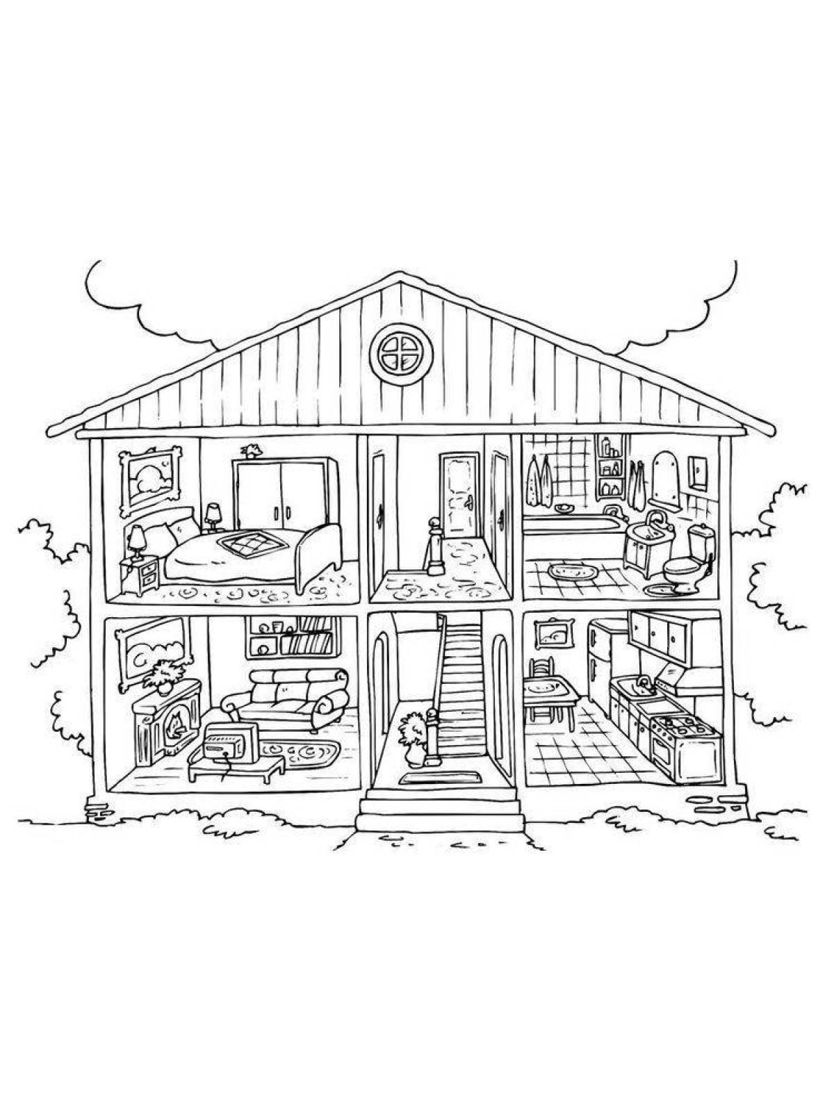 Раскраска дом с комнатами