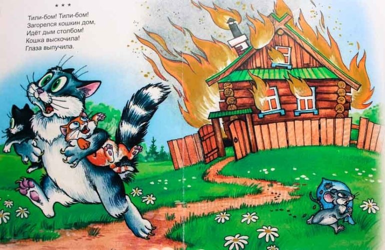 Иллюстрации к потешке тили Бом загорелся Кошкин дом