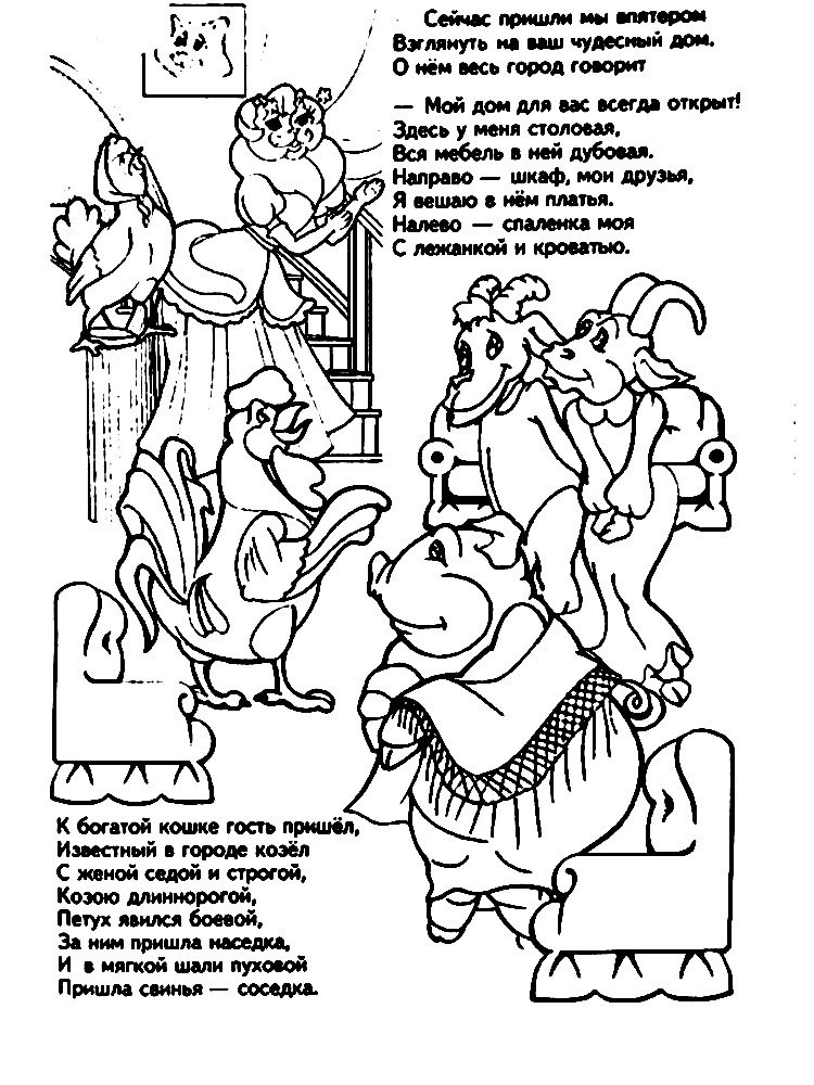 Раскраски к произведению с.я.Маршака Кошкин дом