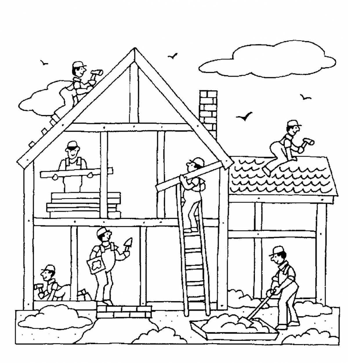 Раскраска строящийся дом