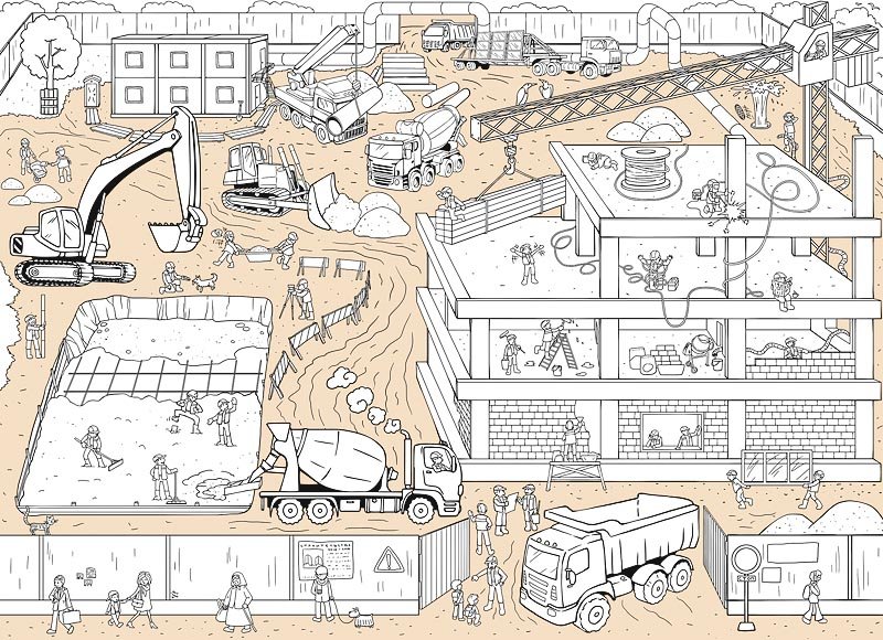 ![Раскраска строительная площадка]()