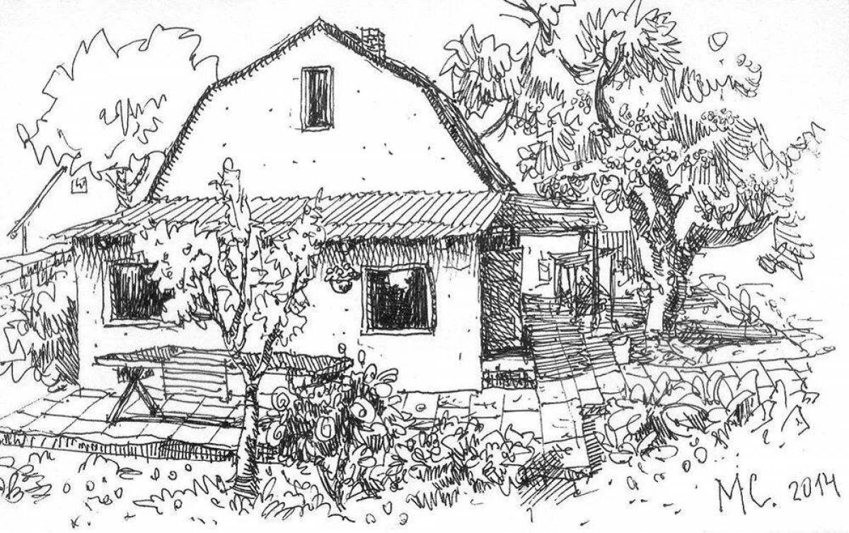 Раскраска сельский дом
