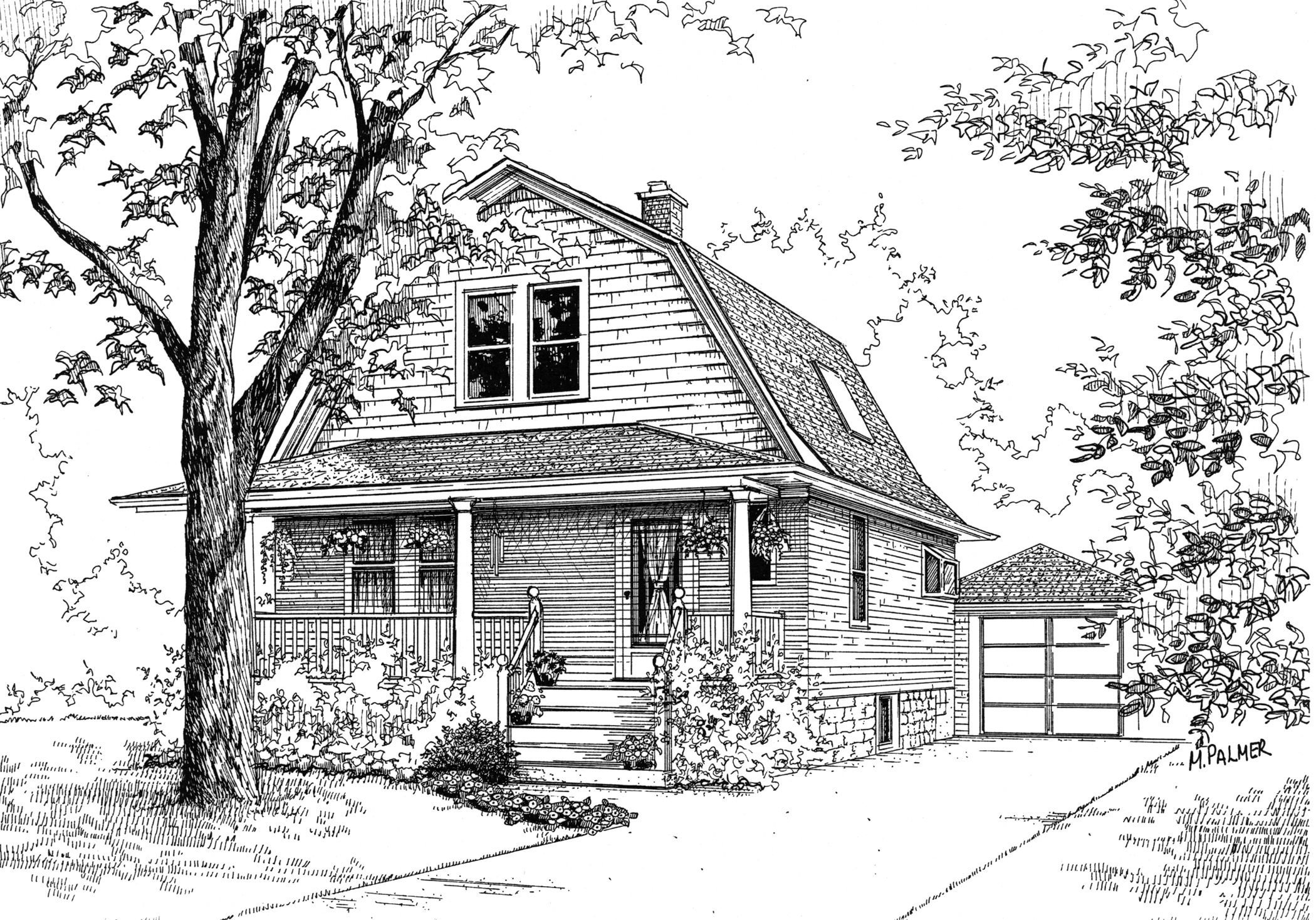 Раскраска дом с садом
