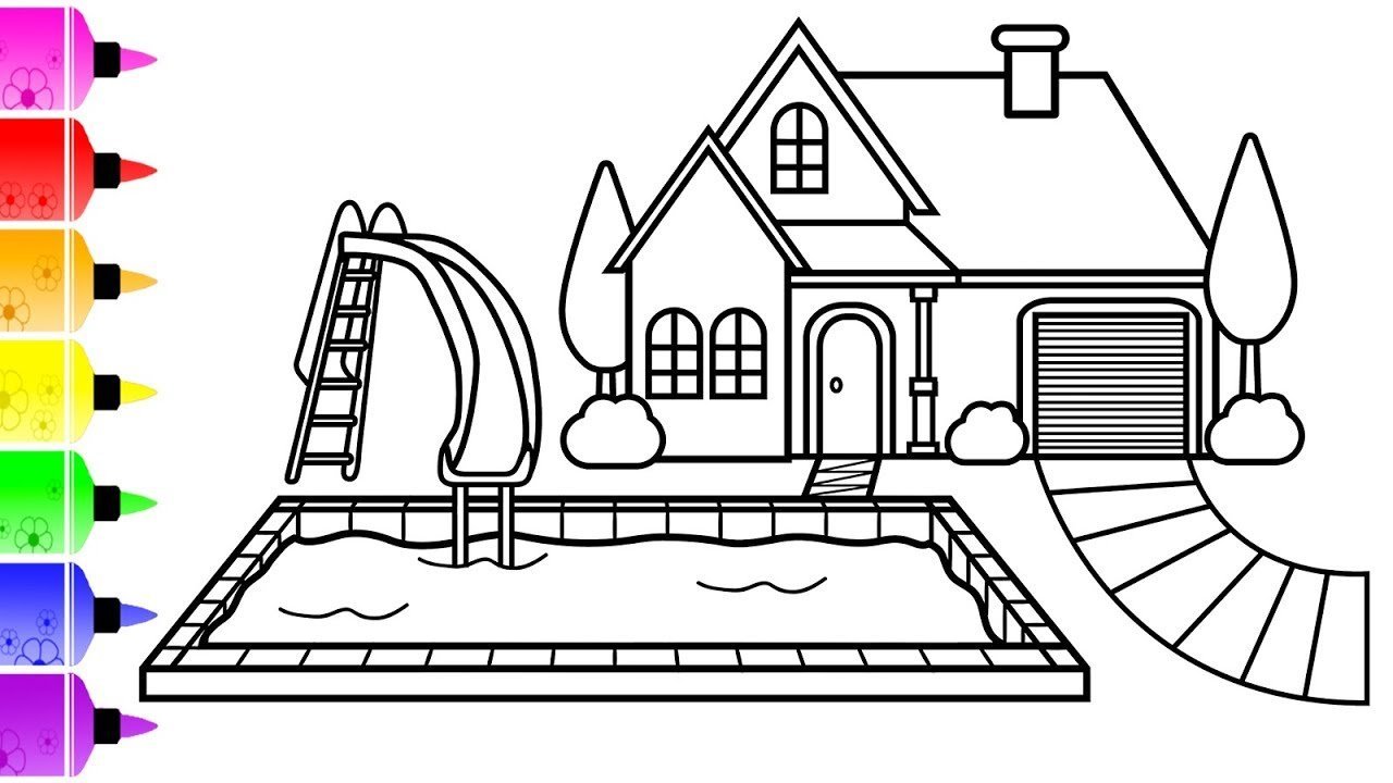 ![Раскрашивать домик с бассейном]()