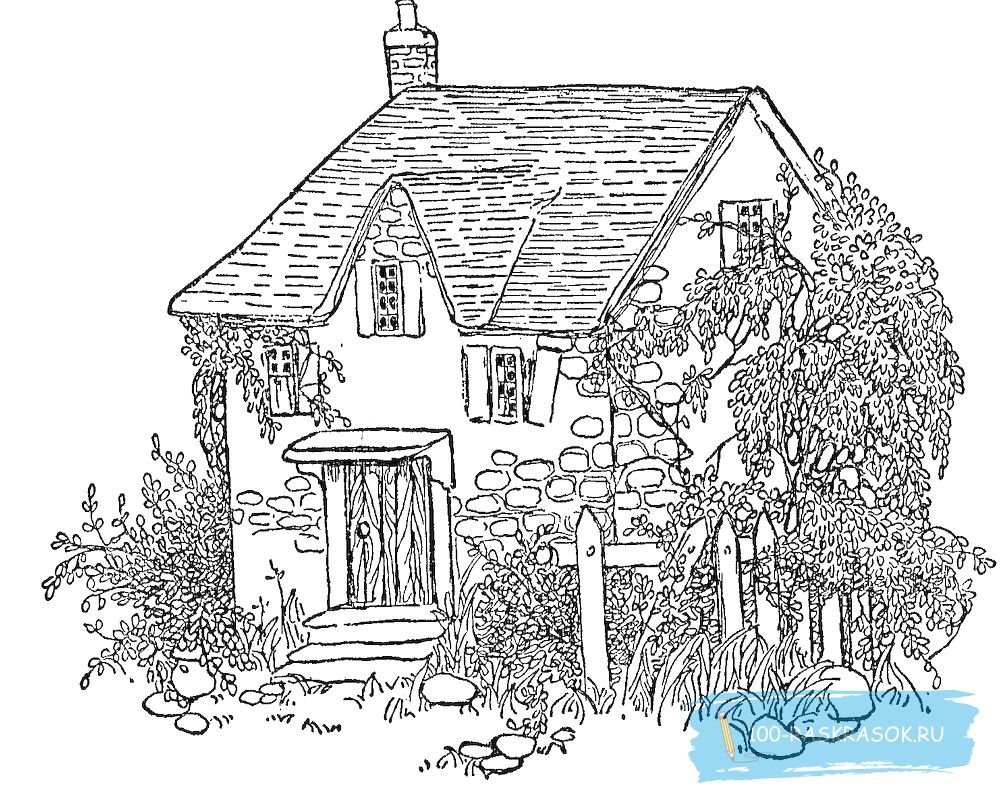 ![Деревенский домик раскраска]()