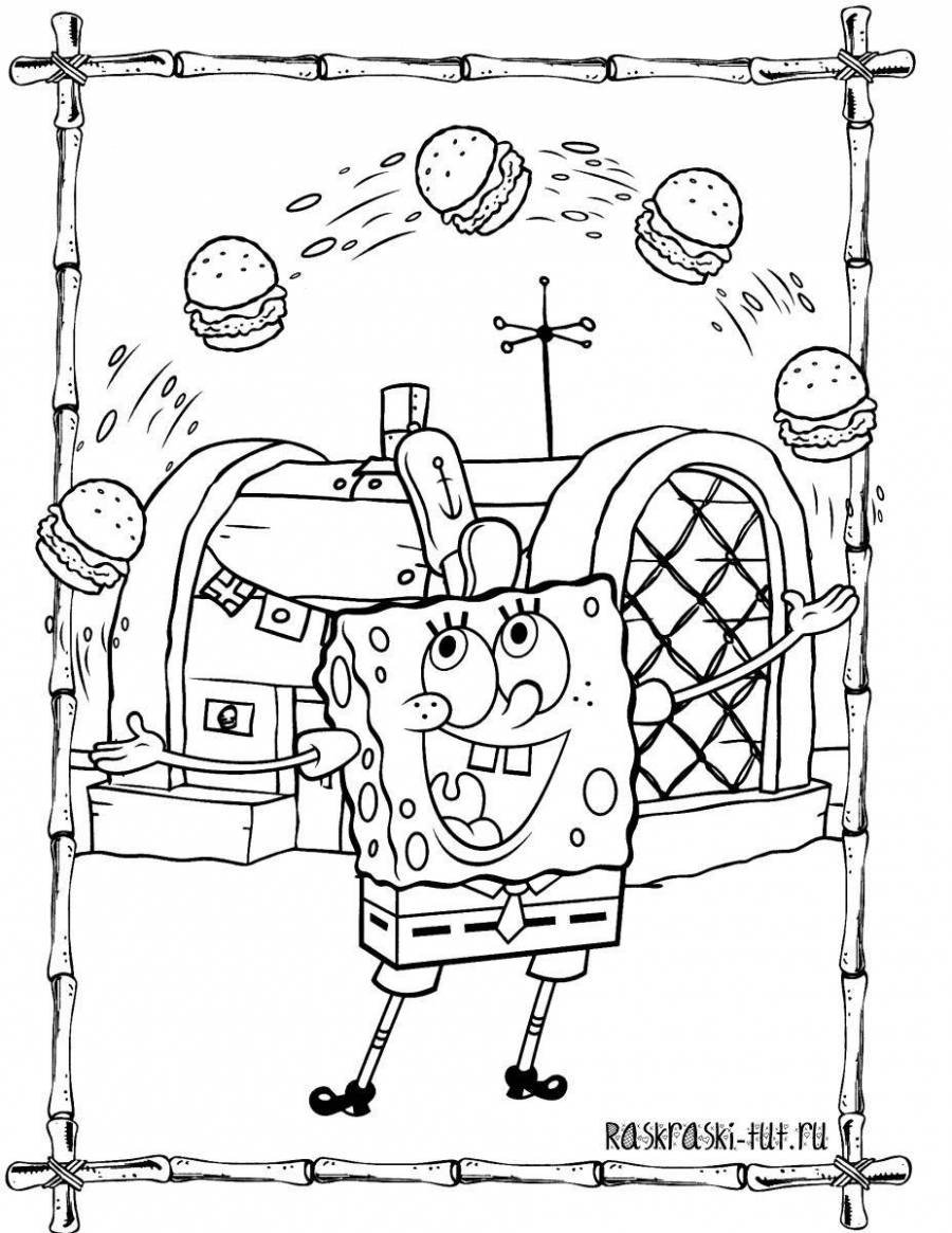 Губка Боб с крабсбургером раскраска