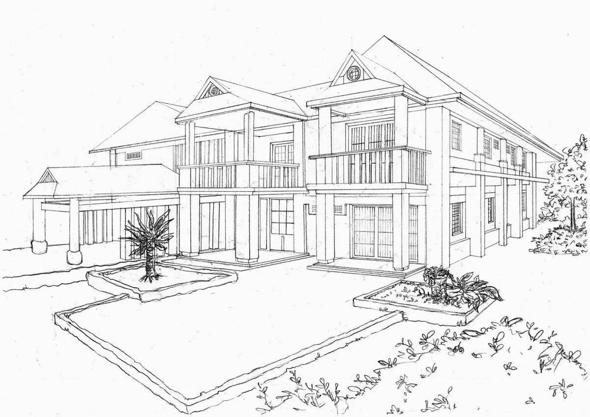 ![Раскраски красивые особняки]()