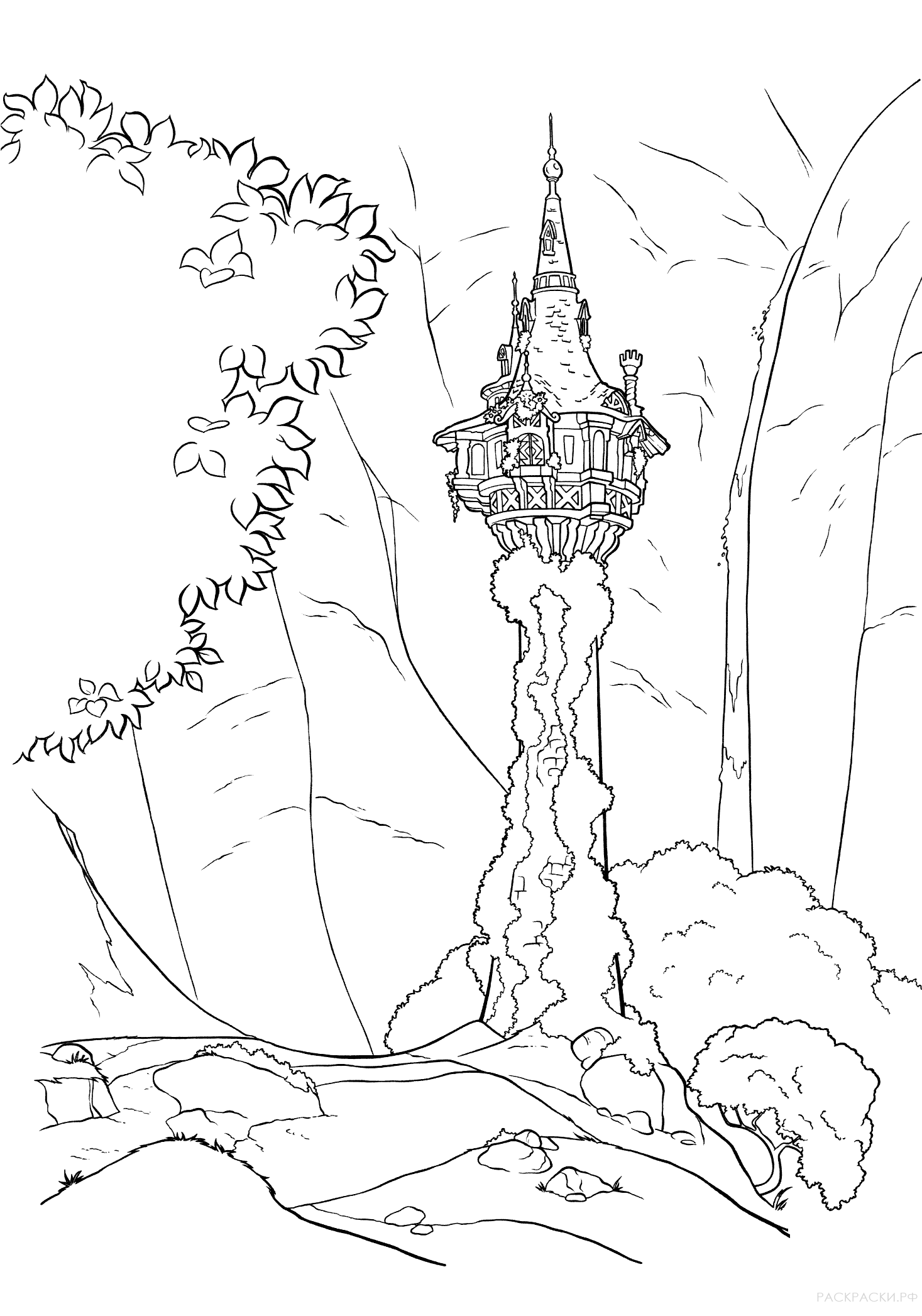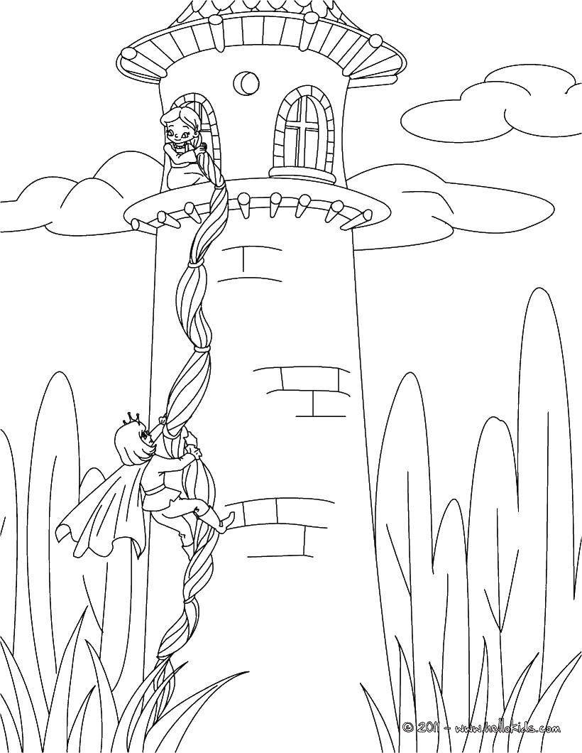 ![Разукрашка башня Рапунцель]()