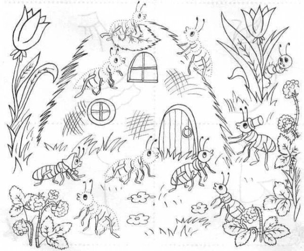 Муравейник раскраска для детей
