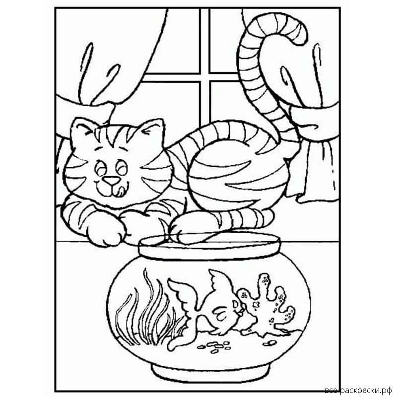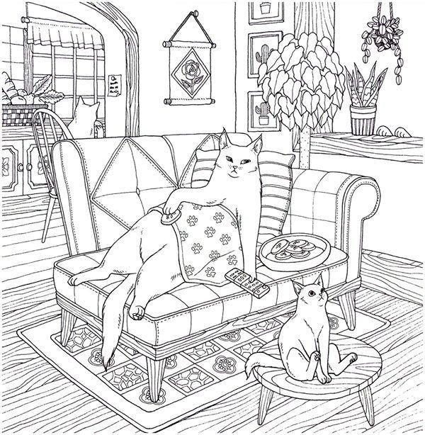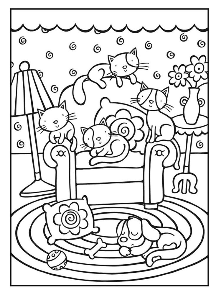 Кошка в доме раскраска