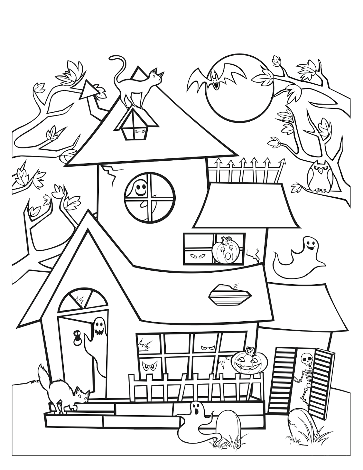 ![Раскраска дом с привидениями]()