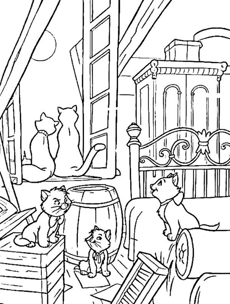 Раскраска домик с котятами