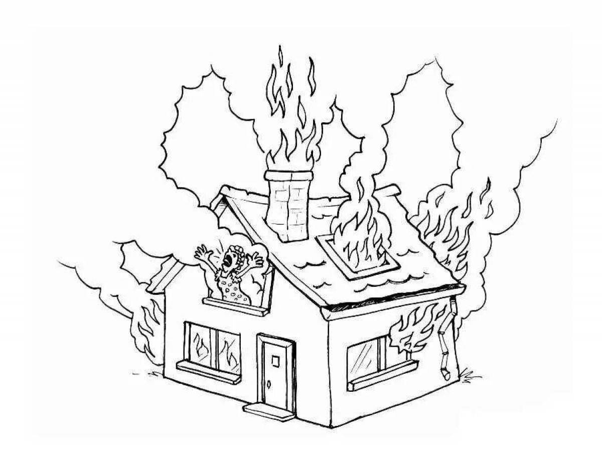 Раскраска пожар в доме