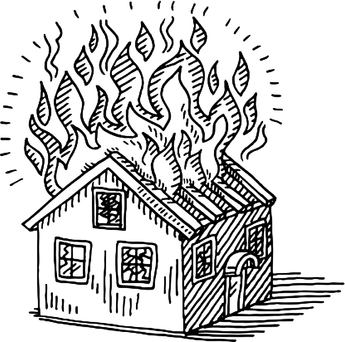 ![Горящий дом раскраска]()