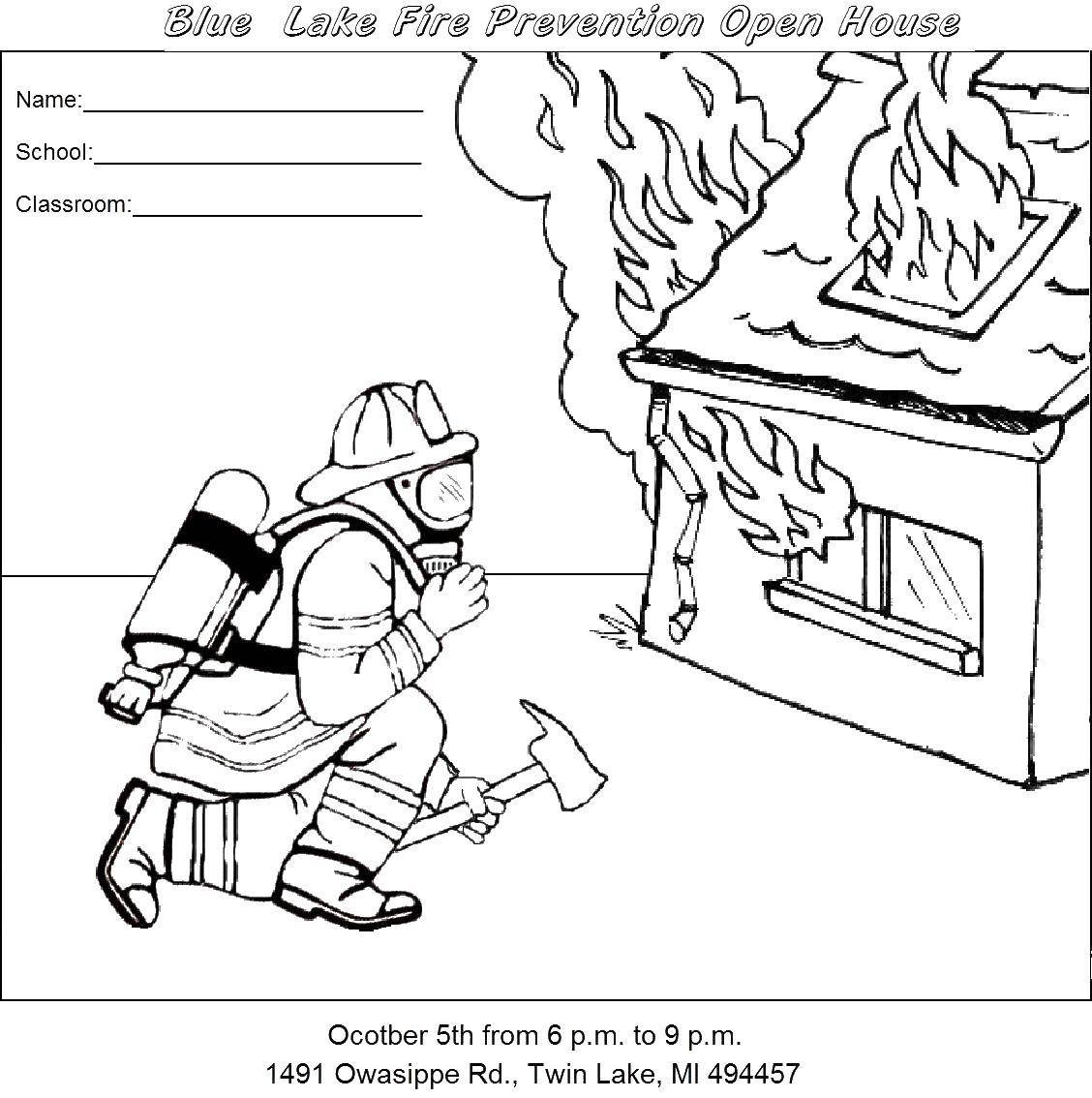 ![Раскраска пожар в доме для детей]()