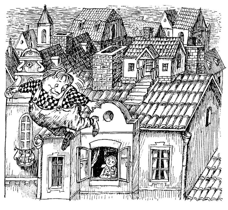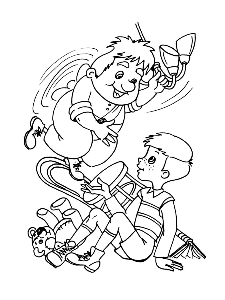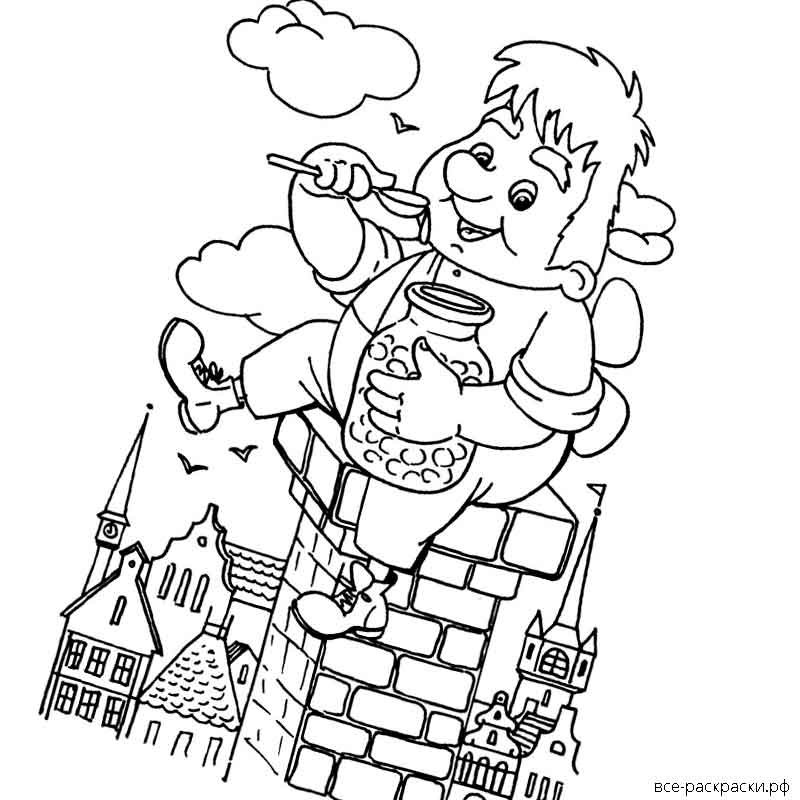 ![Астрид Линдгрен малыш и Карлсон раскраски]()