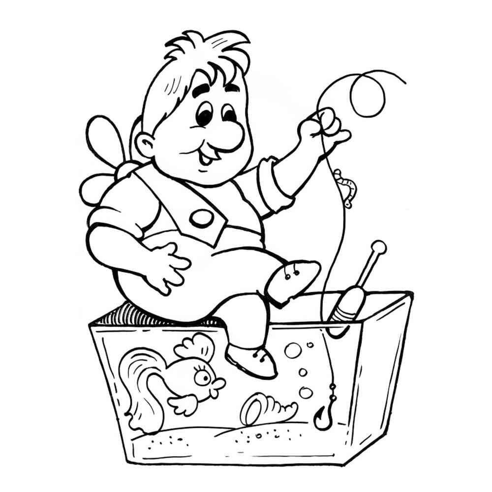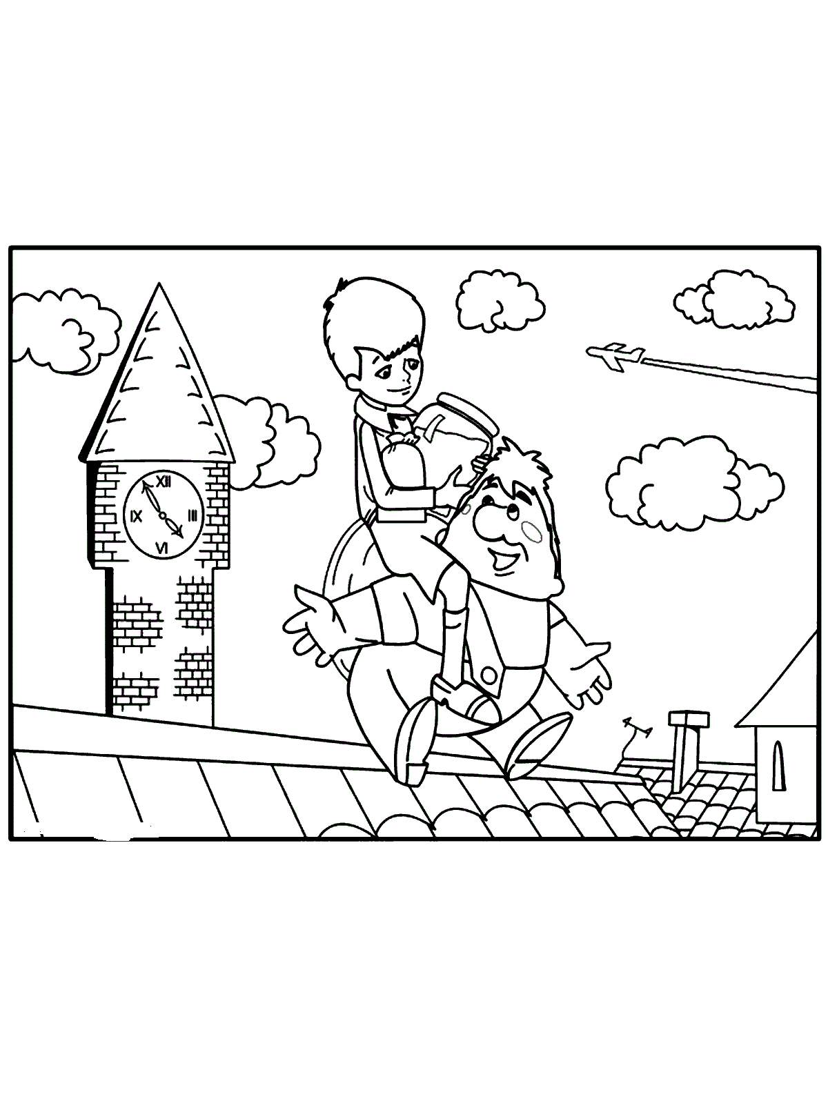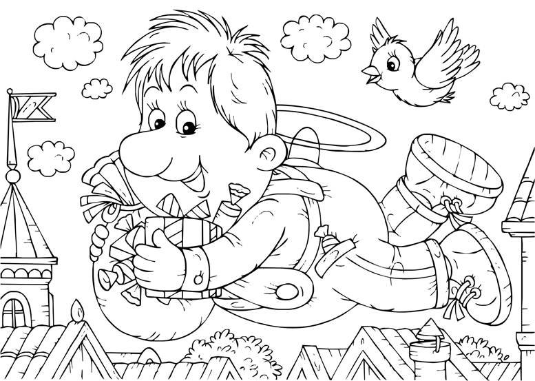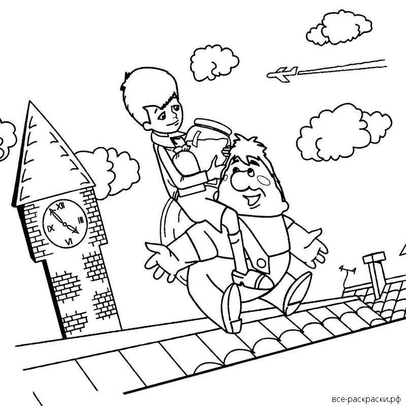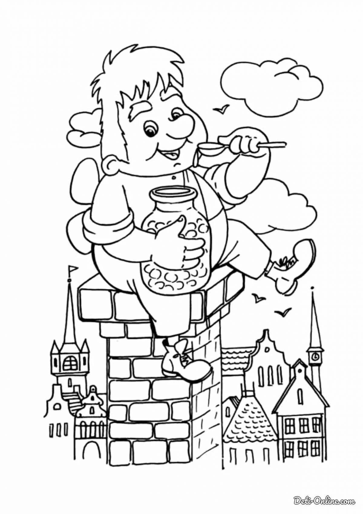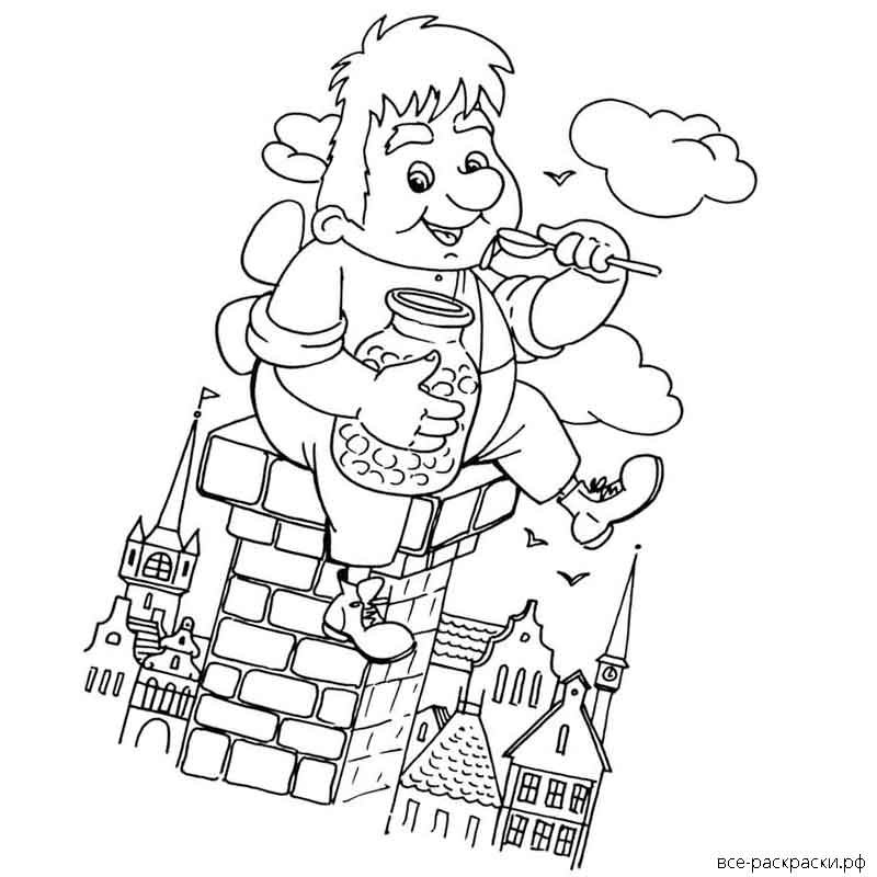![Раскраска малыш и Карлсон который живет на крыше]()