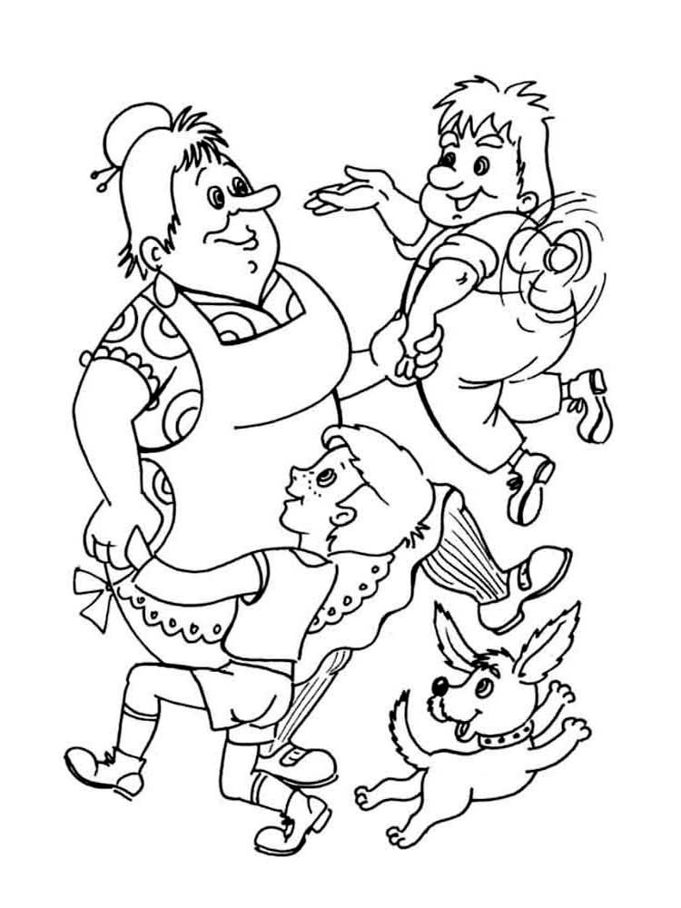![Раскраски малыш и Карлсон и Фрекен бок]()