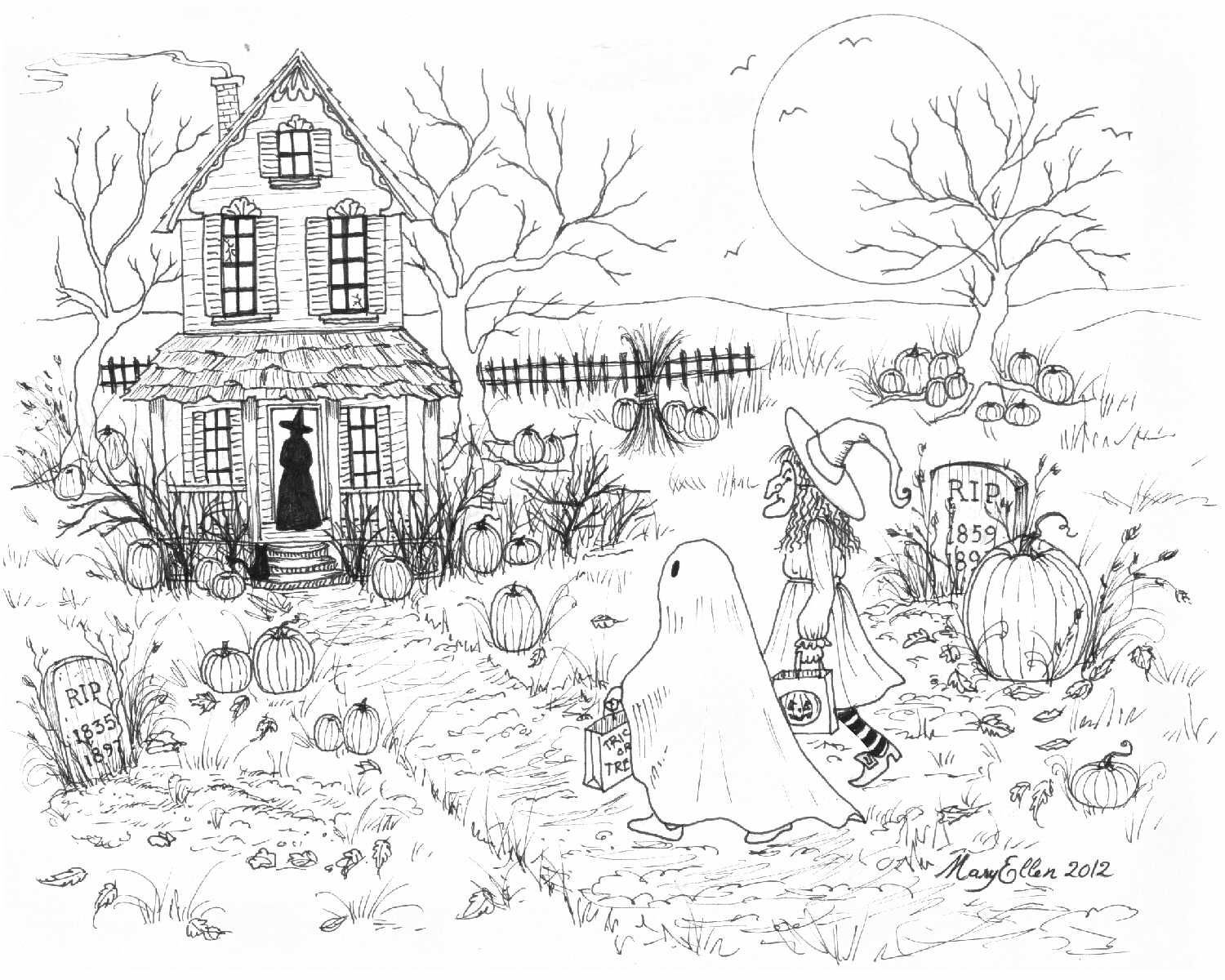 ![Дом Хэллоуина раскраска]()