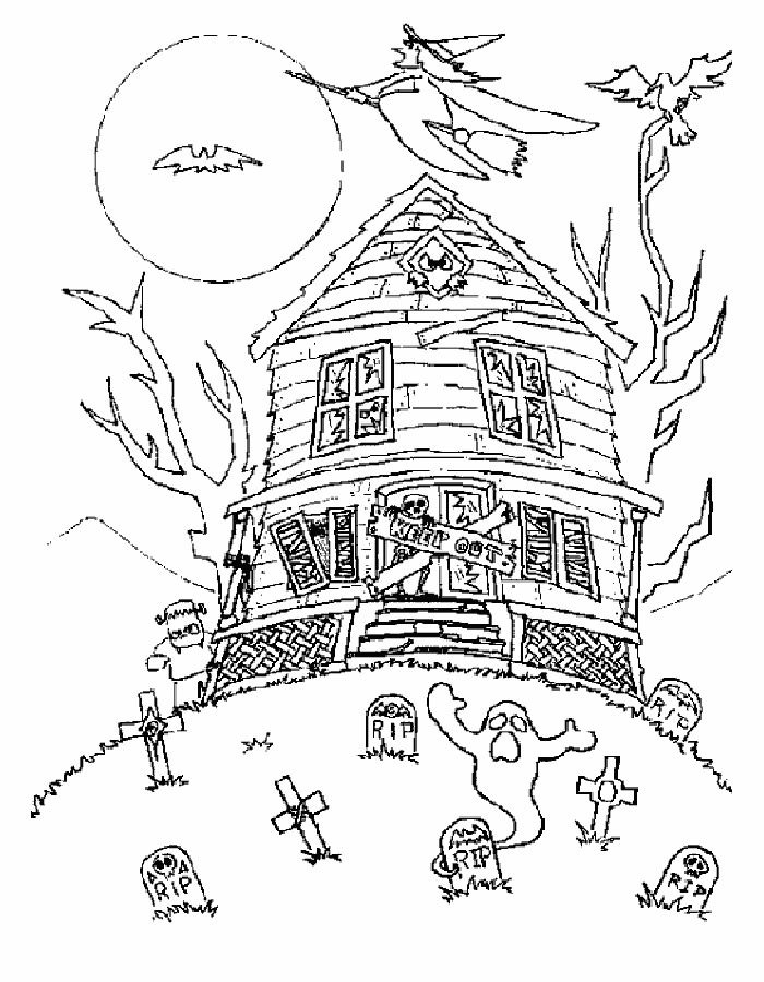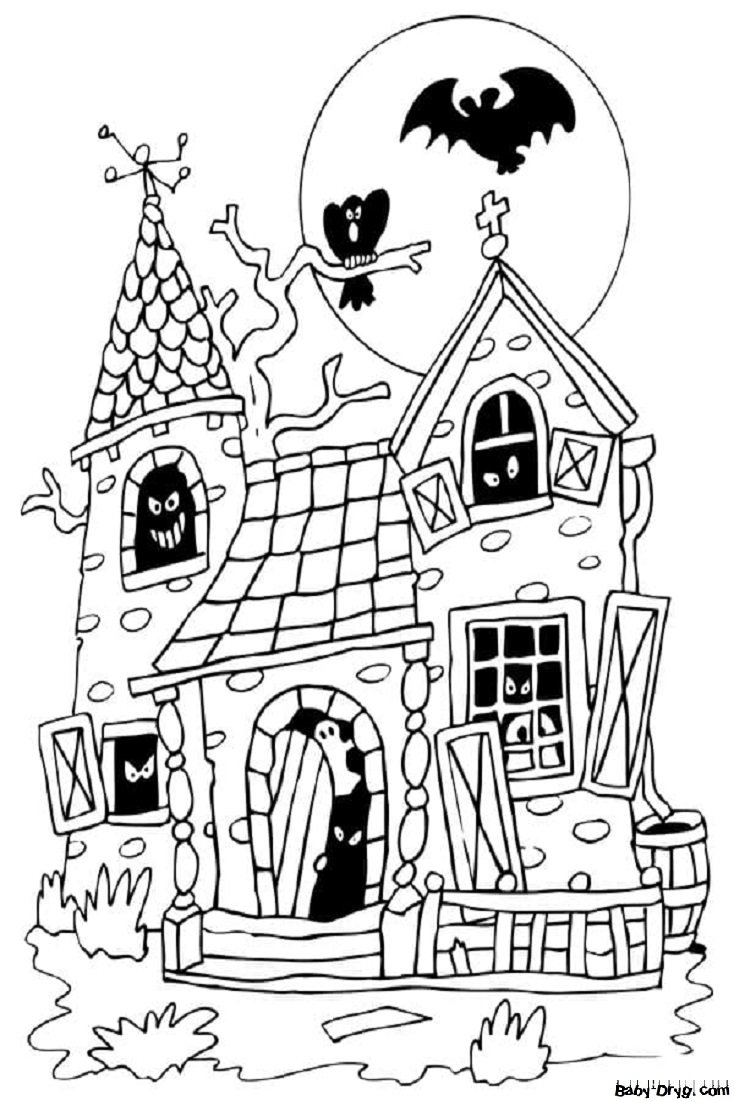 ![Раскраска дом с привидениями]()