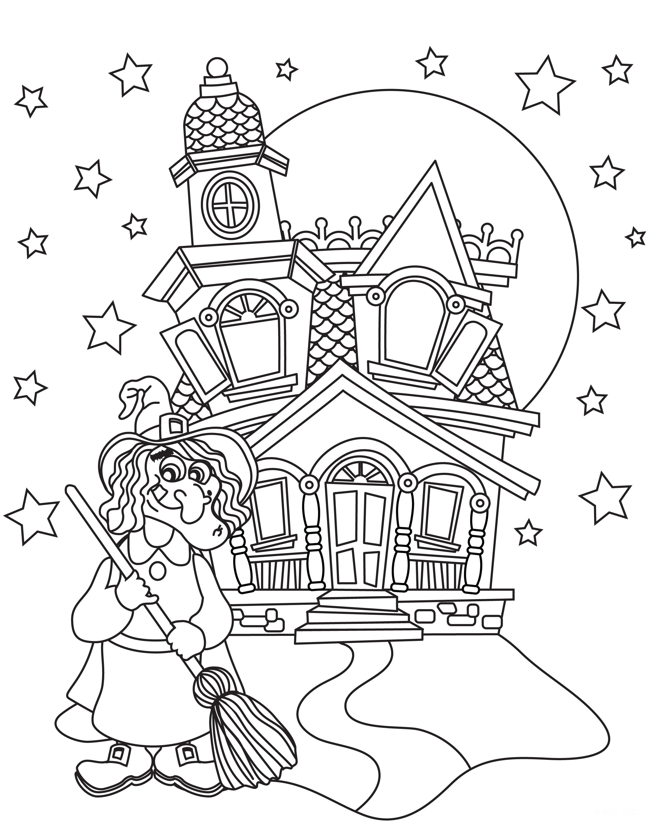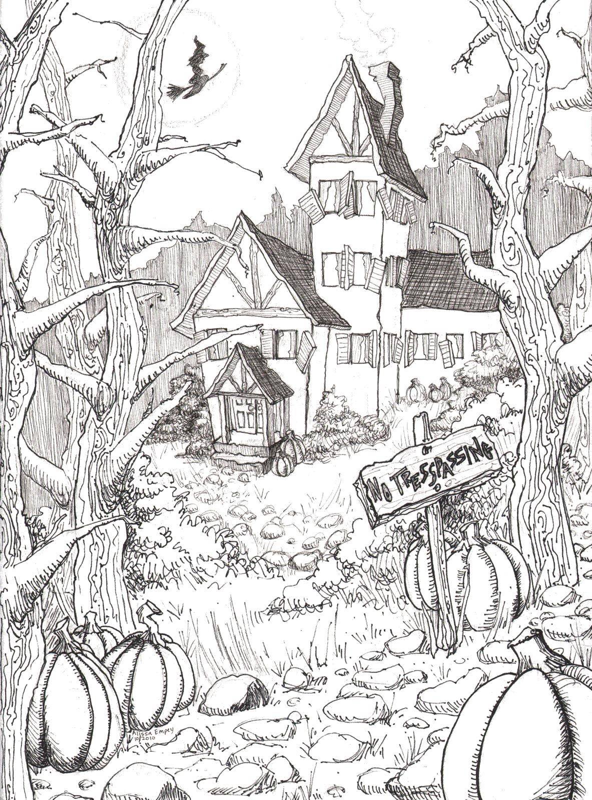 Раскраска домик ведьмы с страницами
