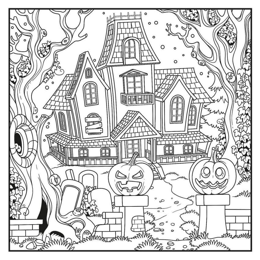 Дом Хэллоуина раскраска
