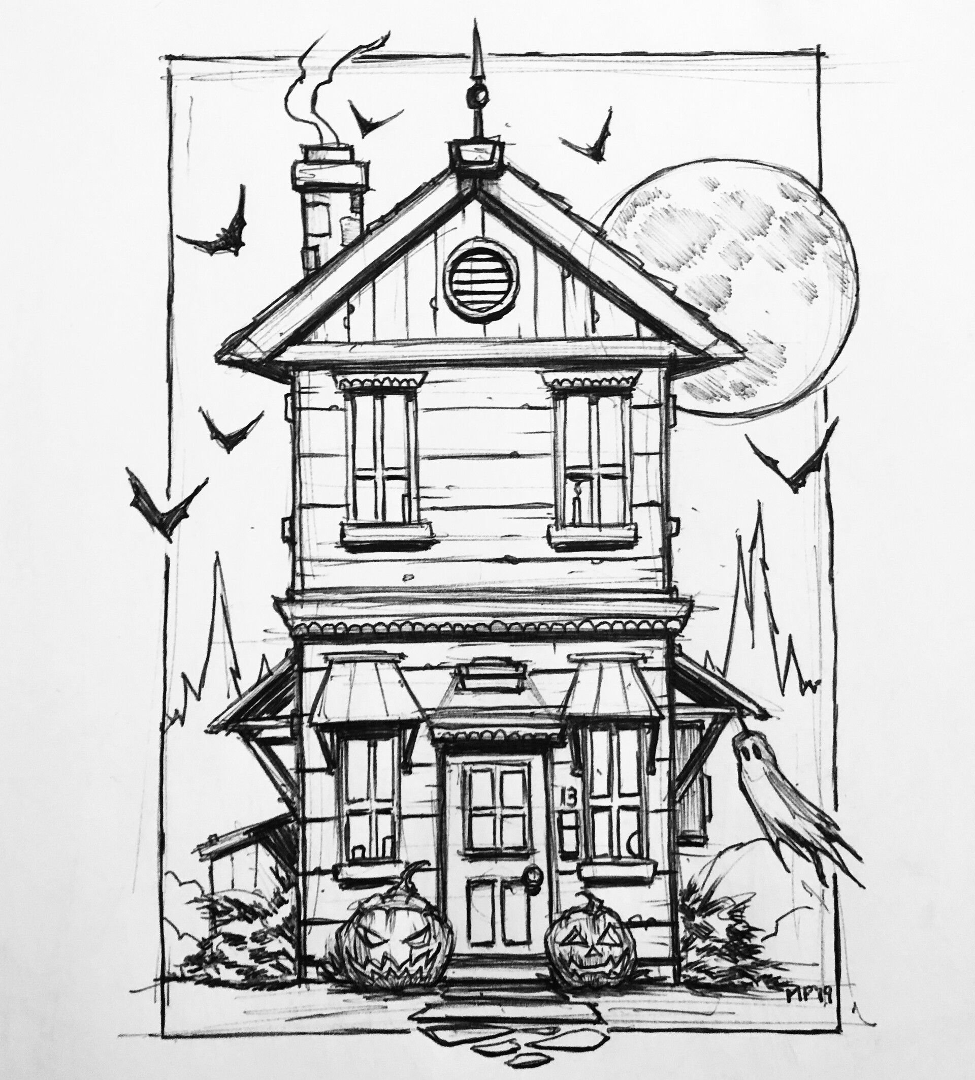 ![Дом с привидениями эскиз]()