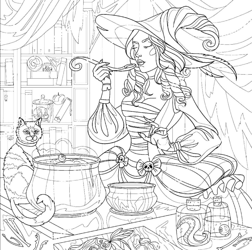 Разукрашки Хэллоуин ведьмы
