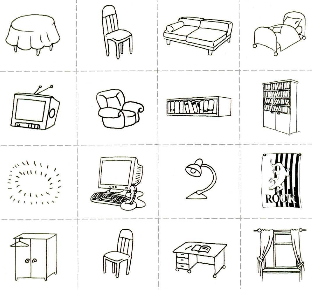 ![Мебель карточки для детей раскраска]()