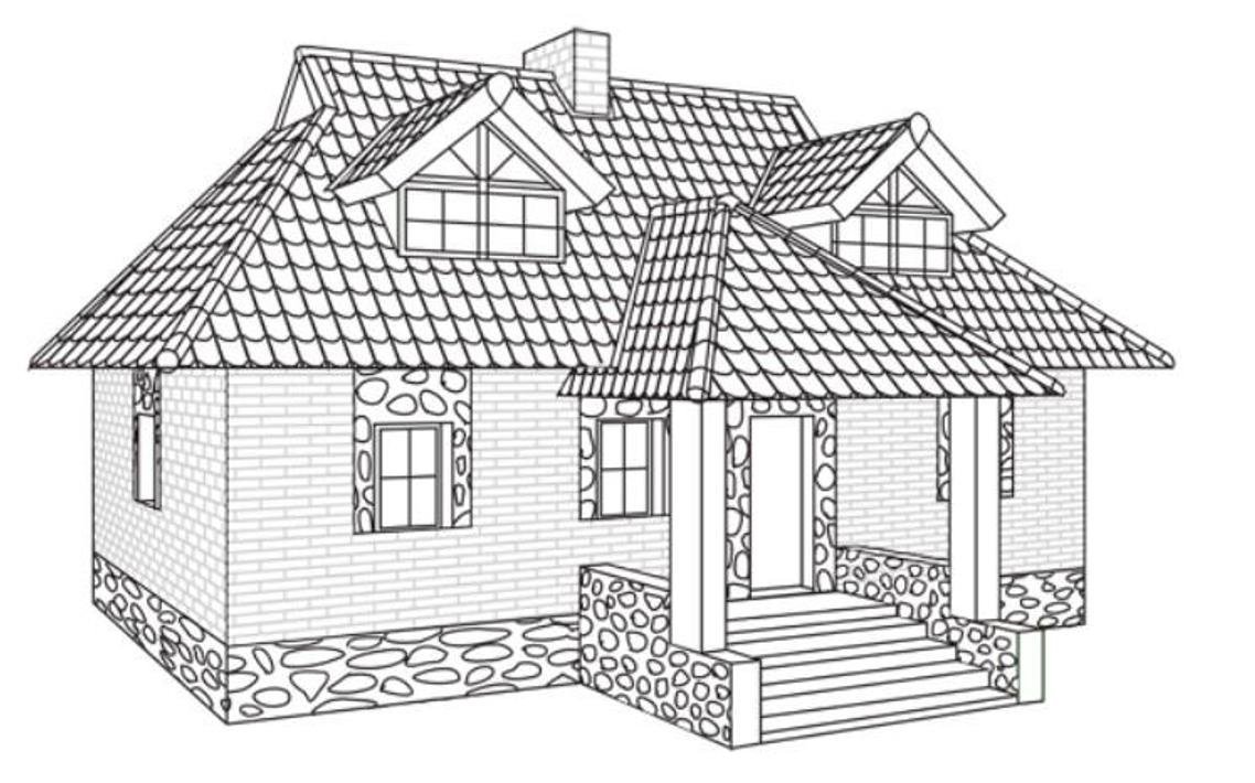![Двухэтажный дом с террасой рисунок карандашом]()