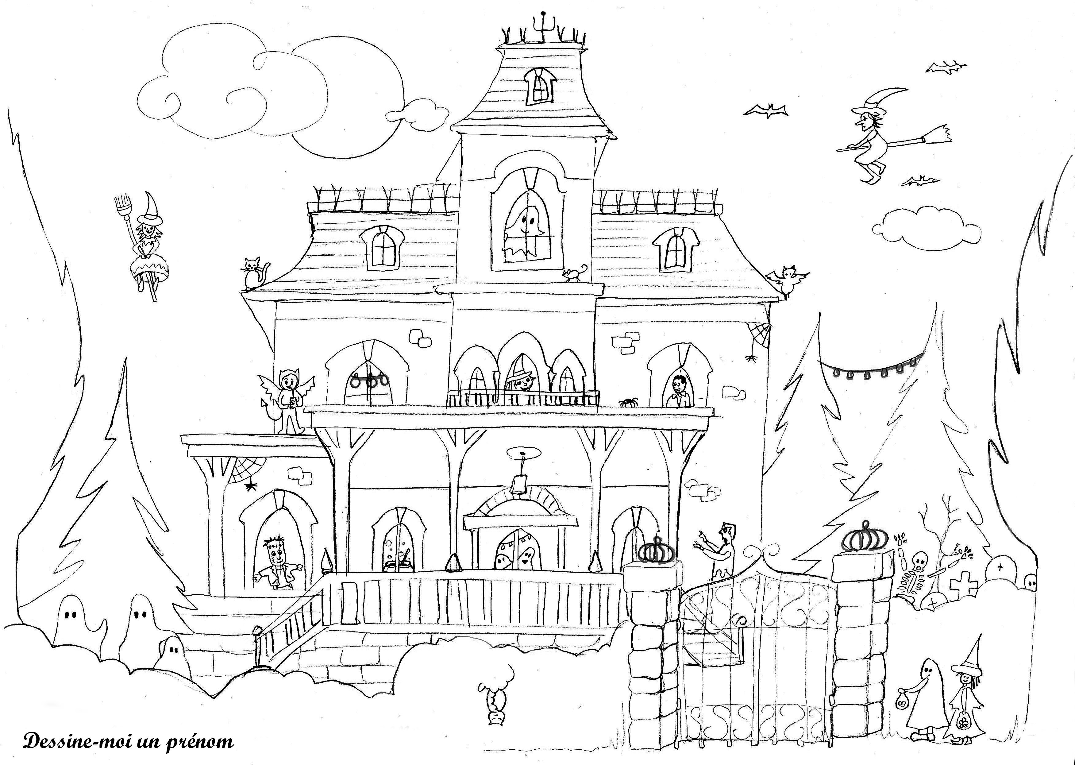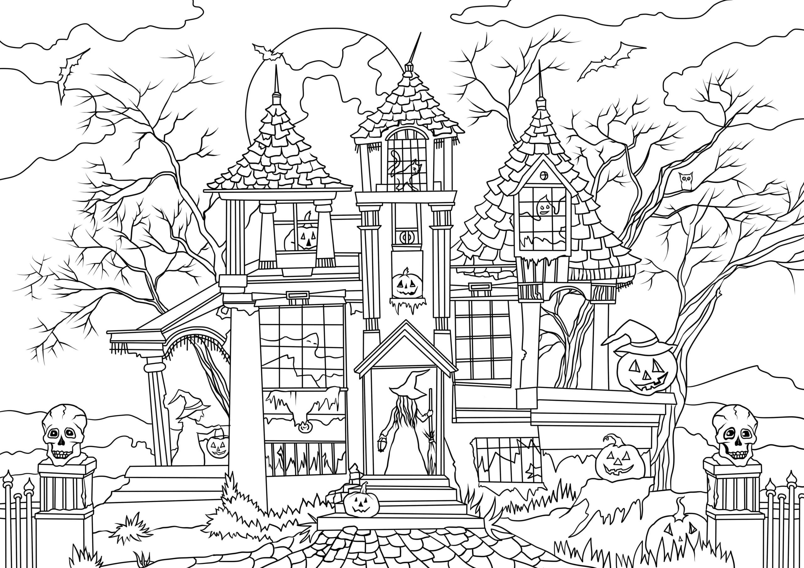 Раскраска Хэллоуин дом