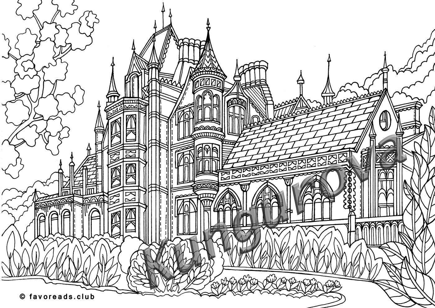 ![Раскраска антистресс замок]()
