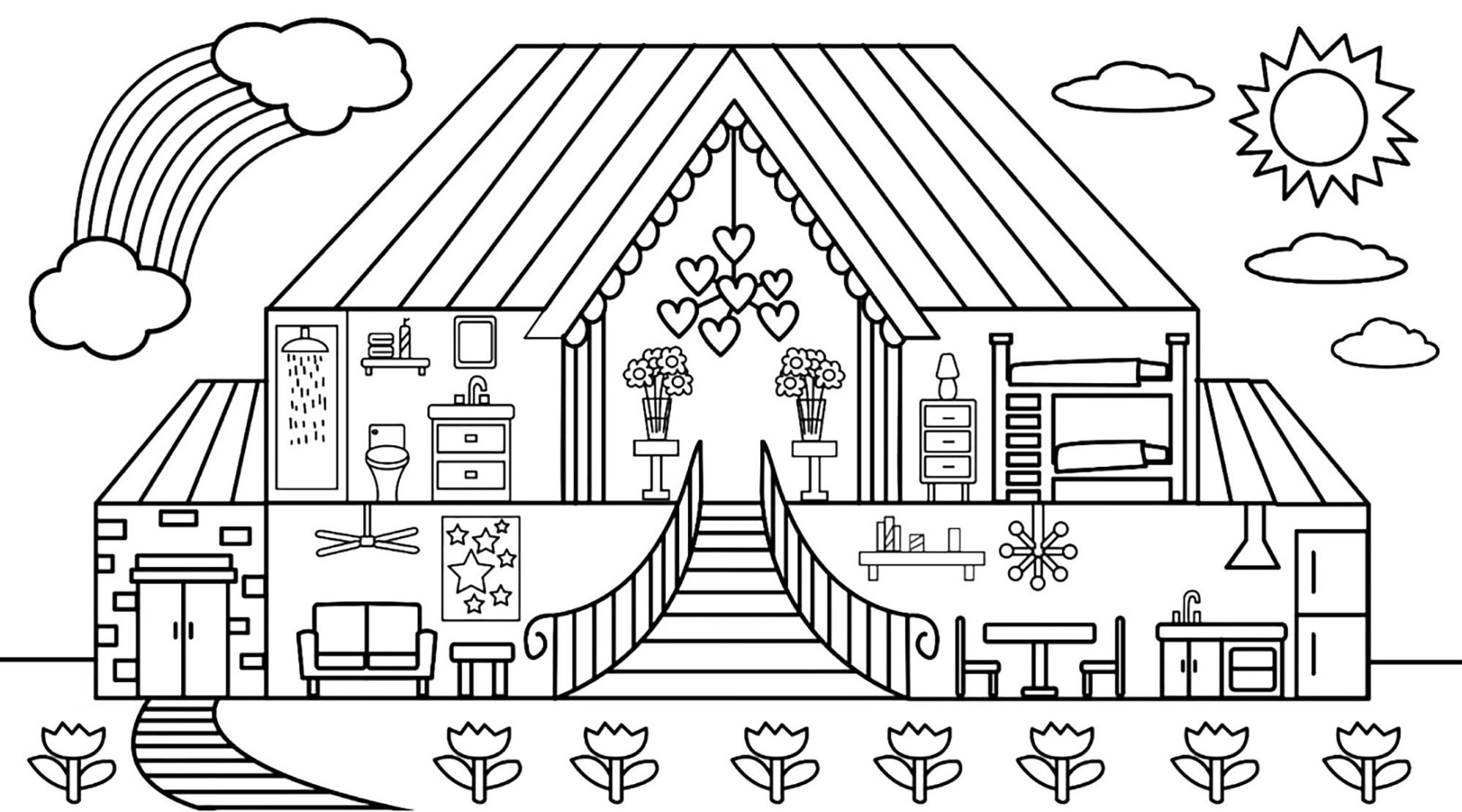 Раскраска домик изнутри