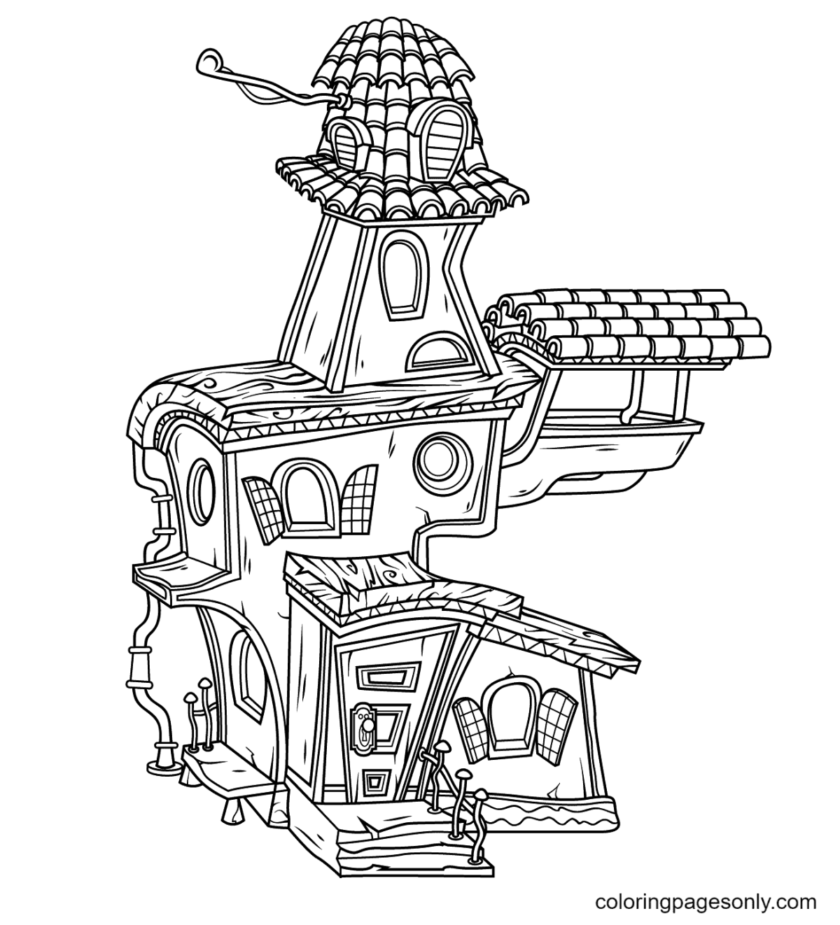 Раскраска необычный домик