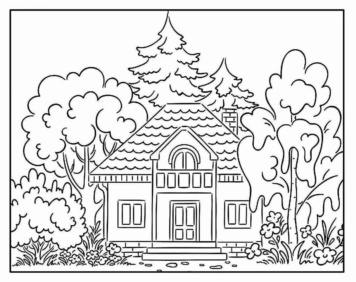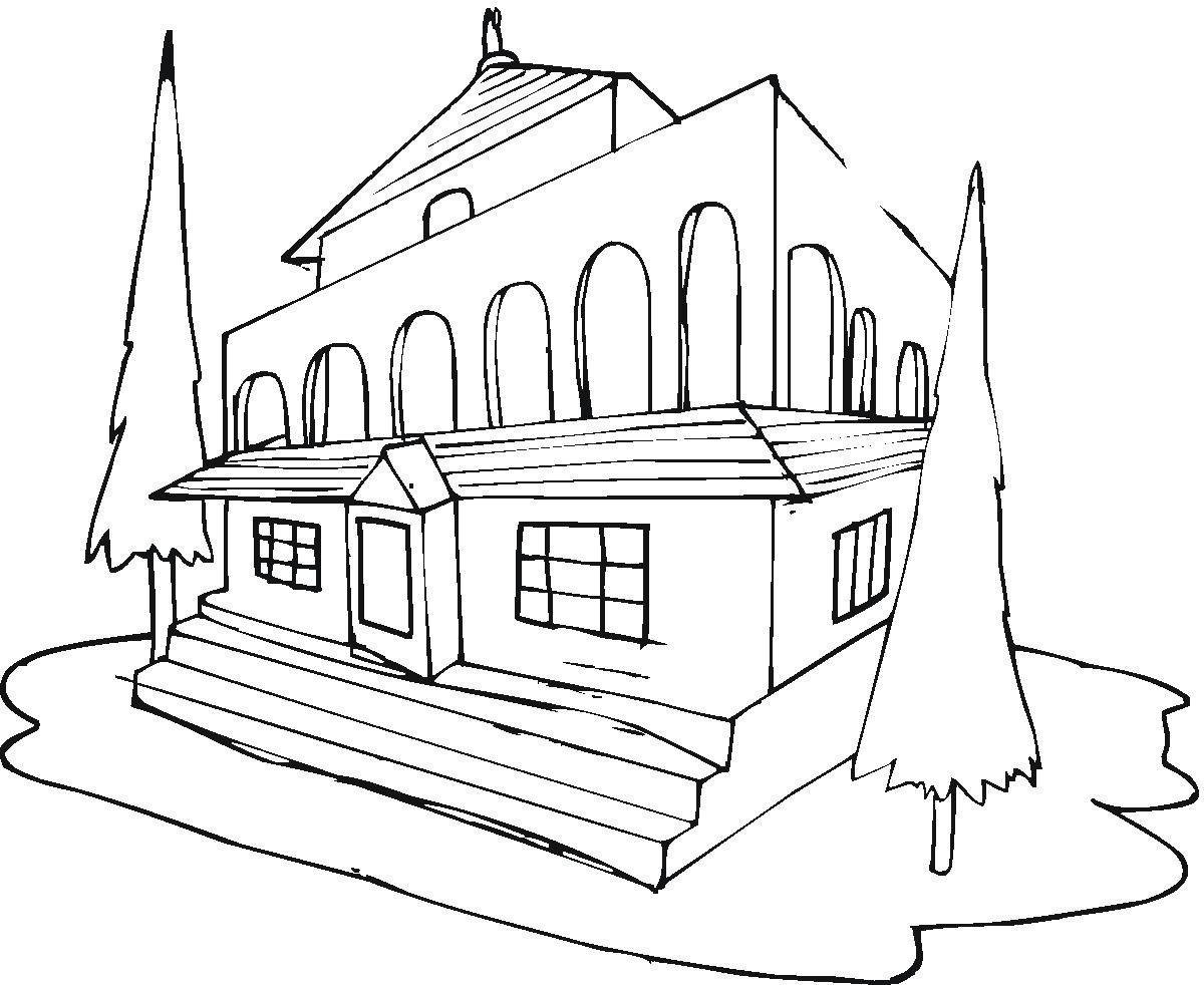 ![Раскраска загородный дом]()