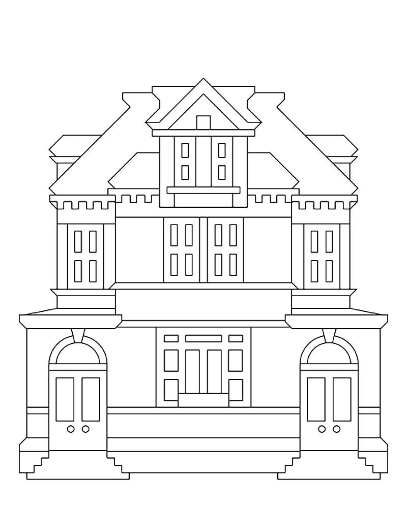 ![Раскраска здания архитектуры]()