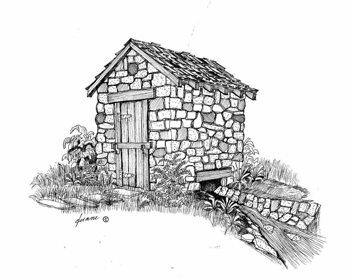 ![Каменный дом раскраска]()
