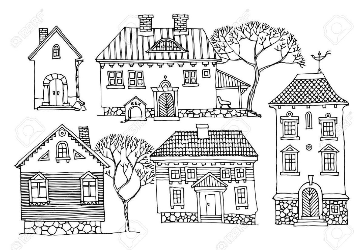 Раскраска. Домики