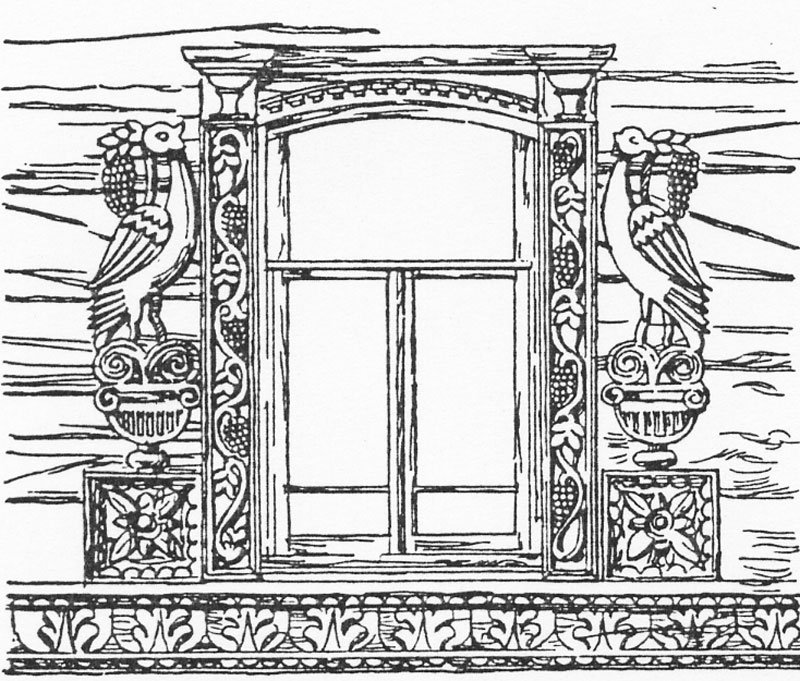![Узоры на оконных наличниках]()