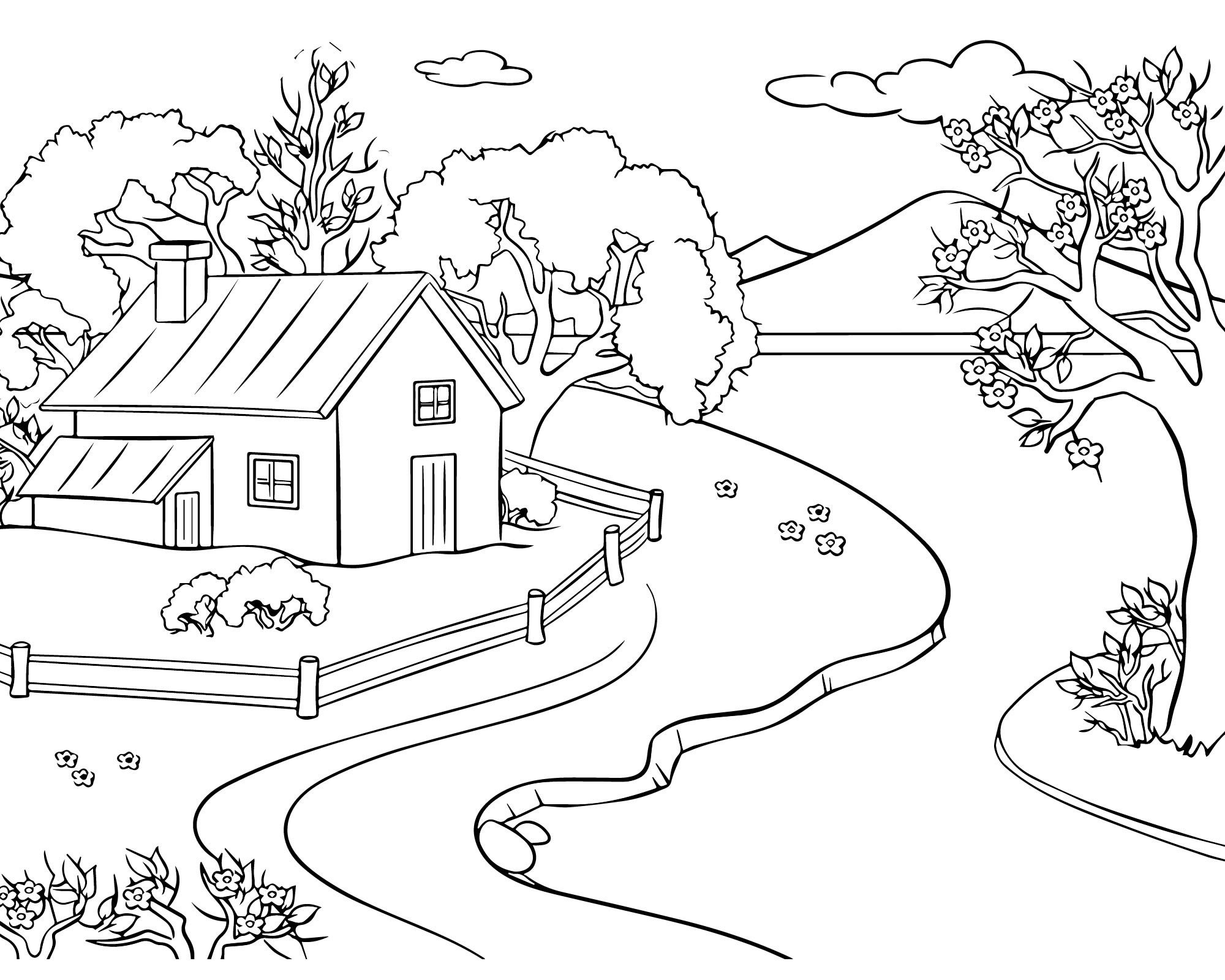 Раскраска домик на природе