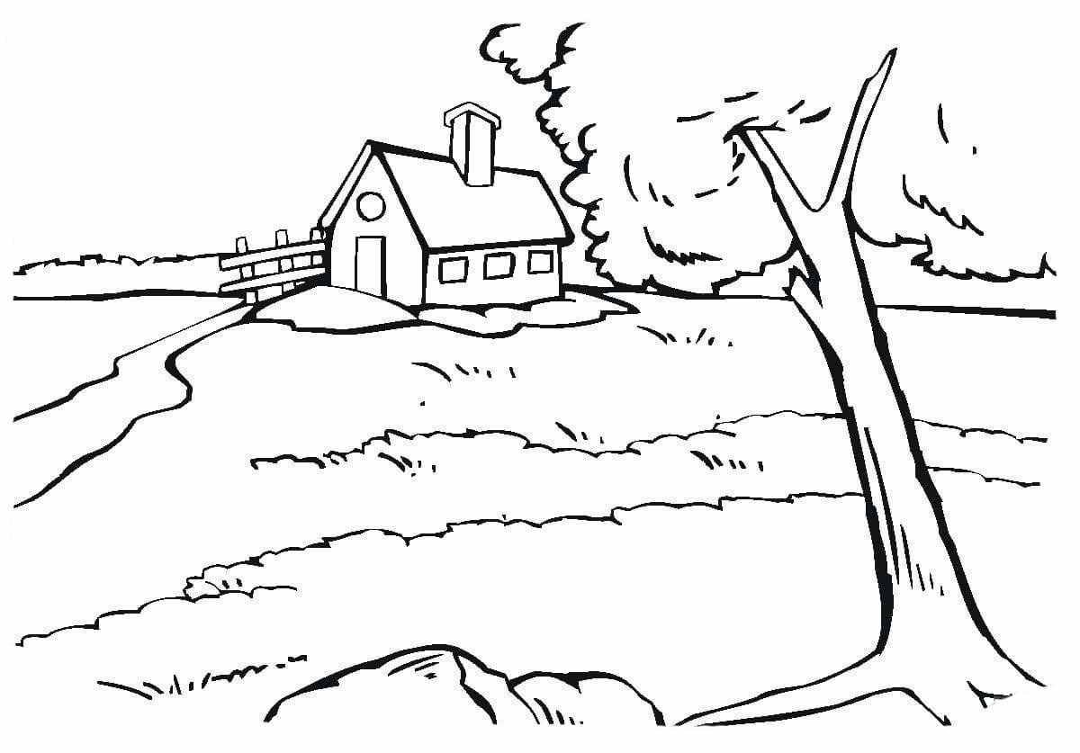 Пейзаж с домом раскраска