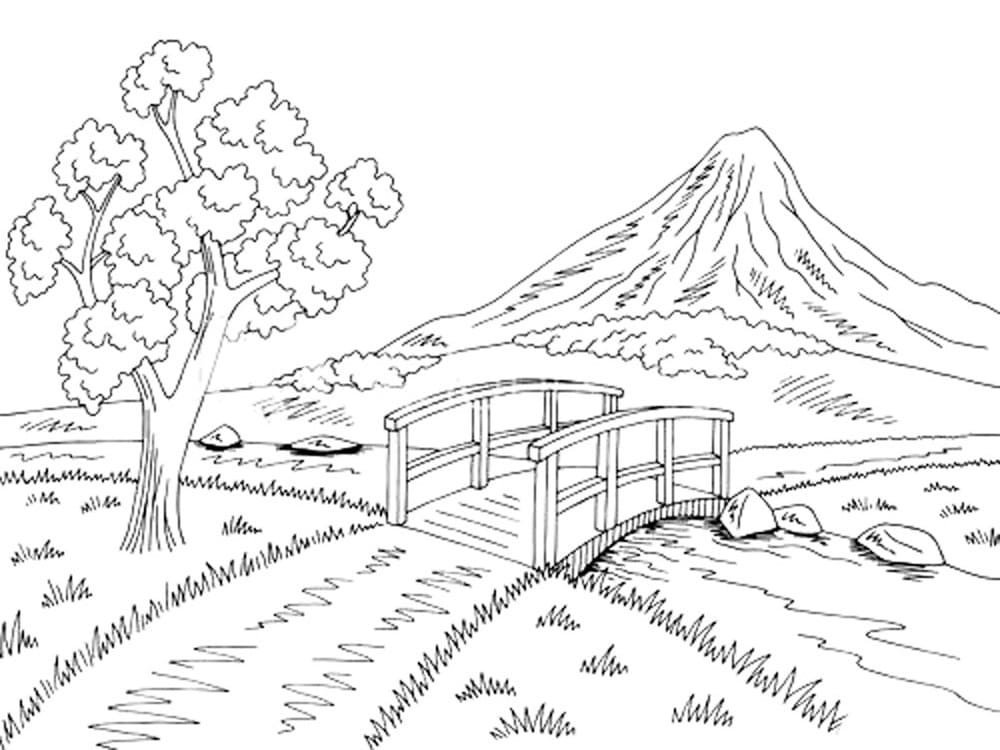 Раскраска пейзаж природы