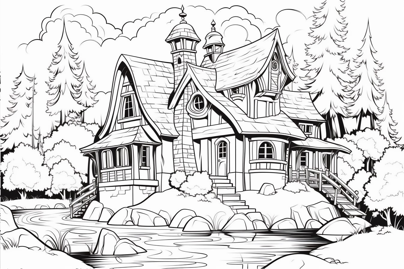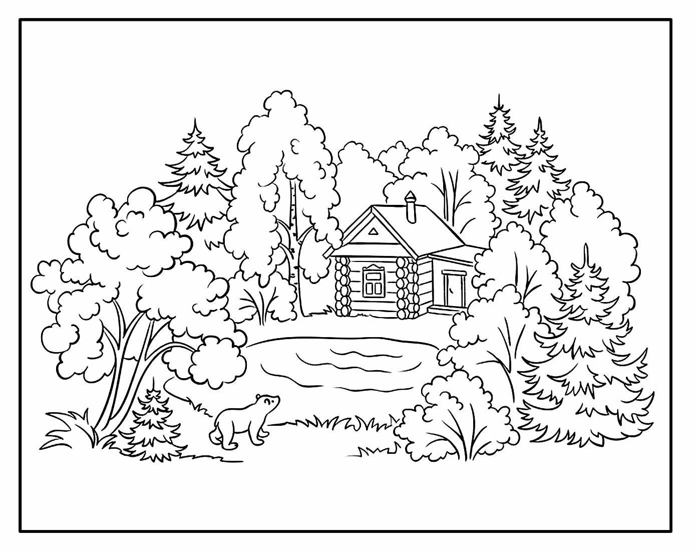 Раскраска домик в лесу