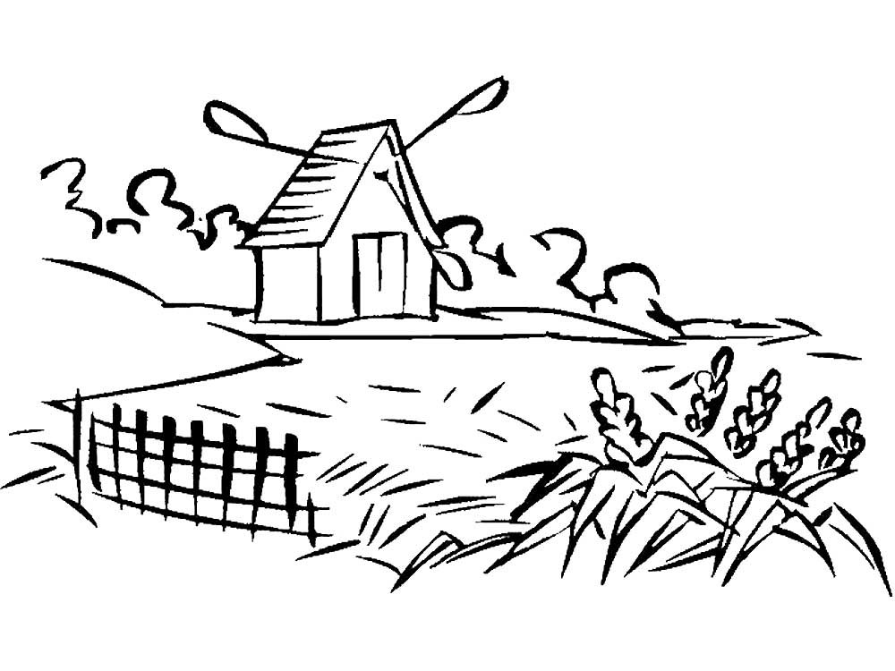 Деревенский пейзаж раскраска
