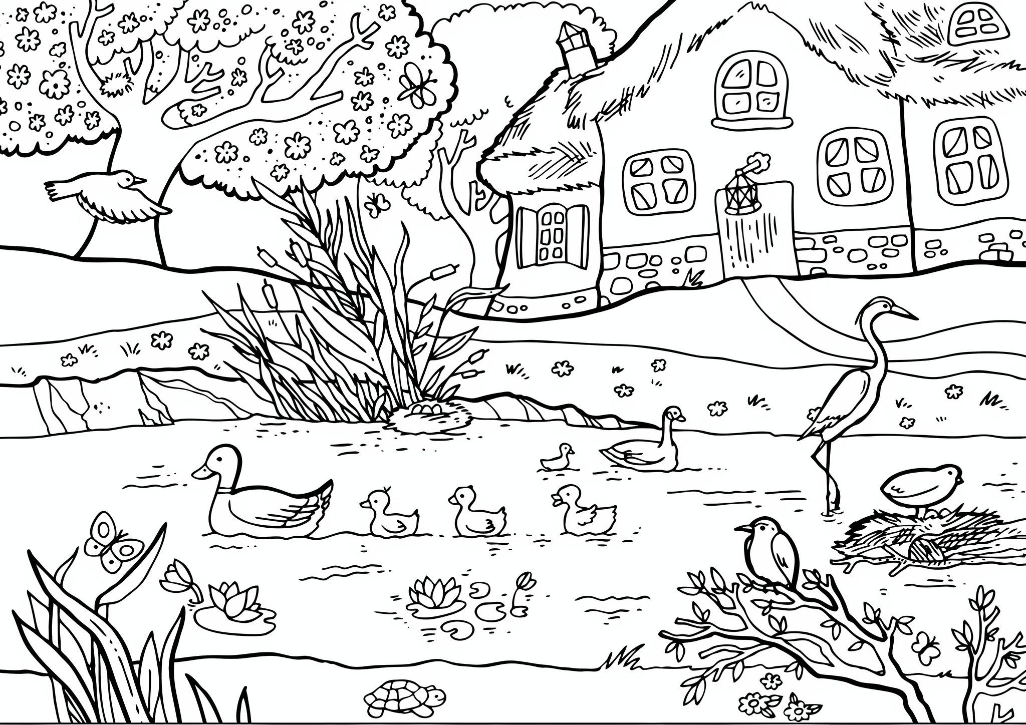 Весенний пейзаж раскраска