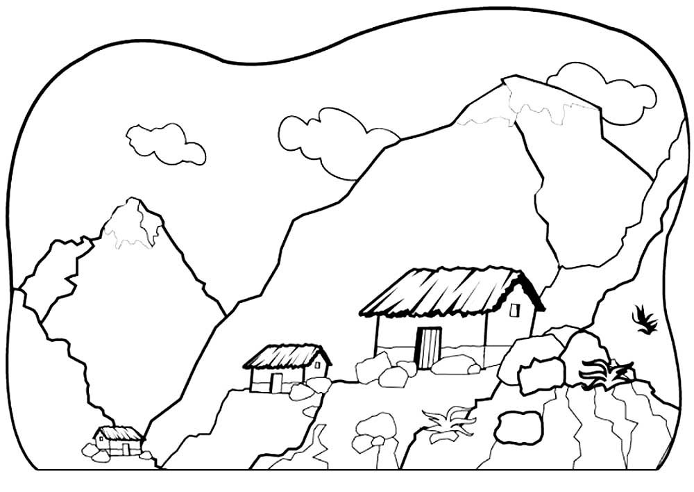 Горный пейзаж раскраска