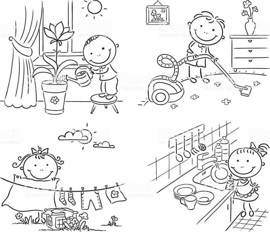 ![Домашние дела раскраска для детей]()